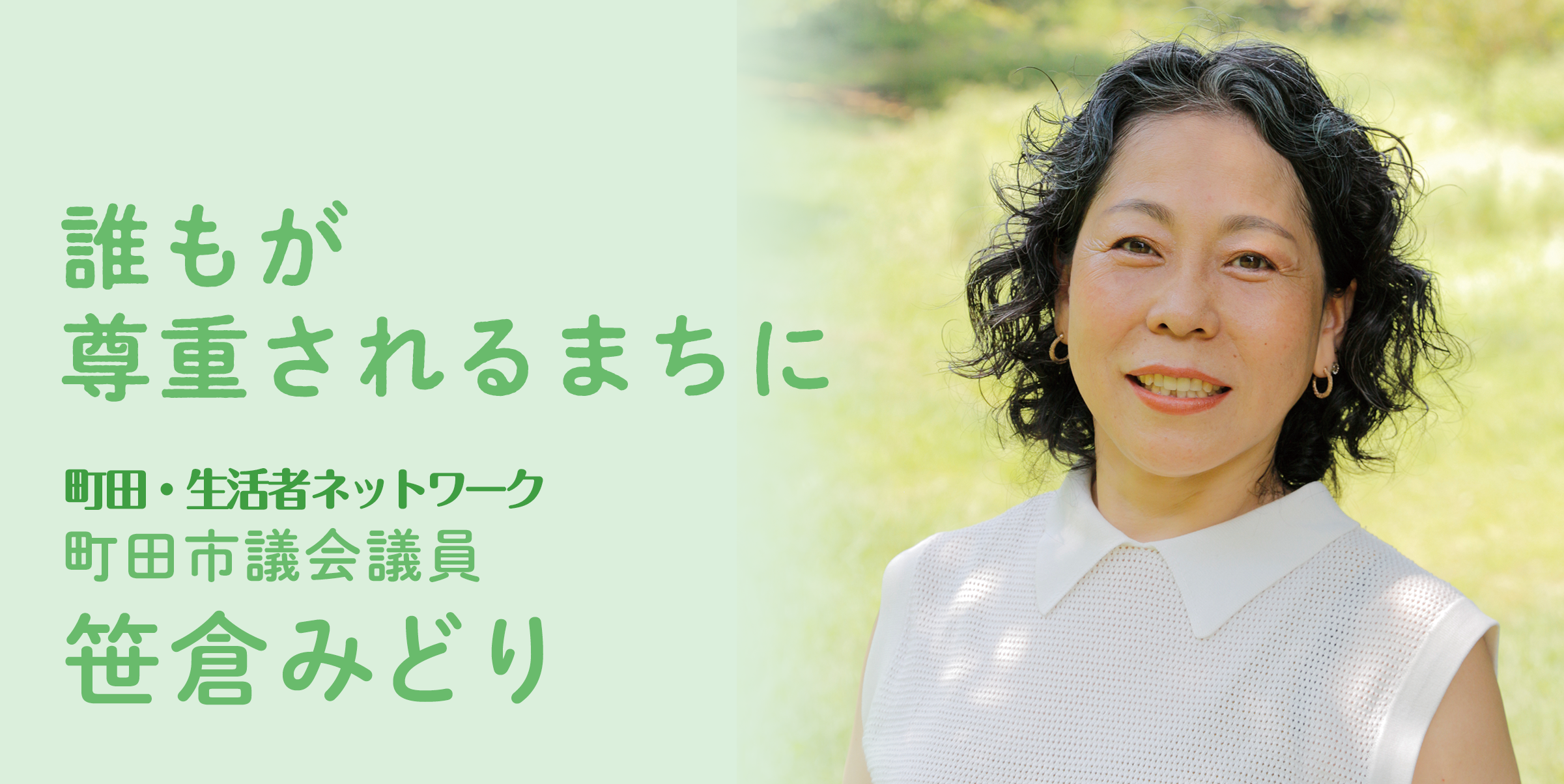誰もが尊重されるまちをめざして、子ども・若者の声、市民の声を市政に届けるために、2期目に挑戦します。