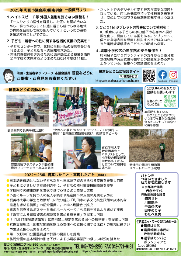 2025年11月7日 / 最終更新日 : 2025年11月7日 sasakura 活動 市議会議員 笹倉みどり 市議会レポートNo.190 発行しました 市議会議員 笹倉みどり 市議会レポートNo.190 発行しました 画面をクリックすると拡大します FacebookXCopy