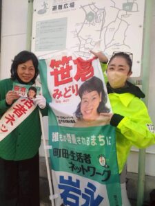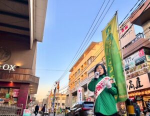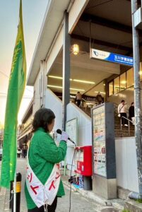 1月17日夕方、玉川学園前駅前で 笹倉みどりのレポートをお配りし、ご挨拶をいたしました。