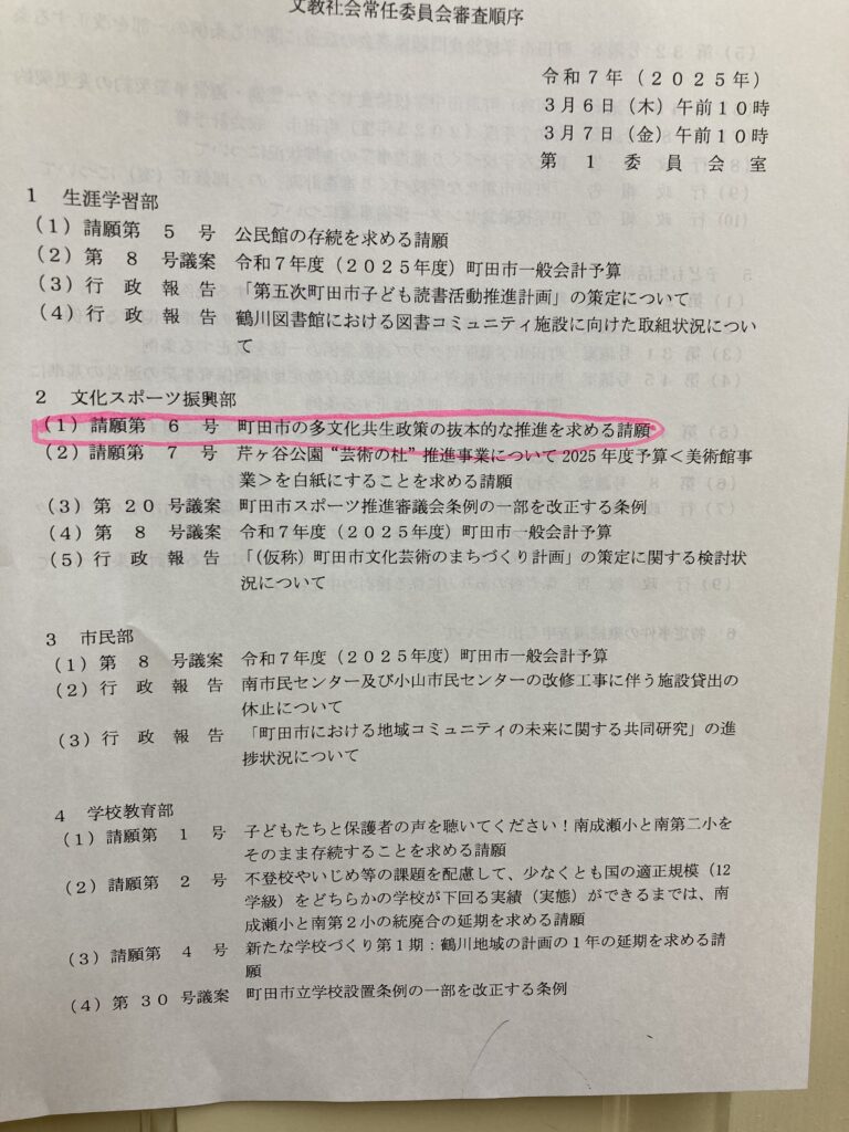 今回の、第1回定例会に出された請願のひとつに、「町田市の多文化共生政策の抜本的な推進を求める請願」があります。 桜美林大学の学生有志「政策ゼミ」のメンバーが提出しました。 市議会に送り出していただいてから、若者の政治参加に関われないか、と... -